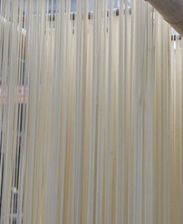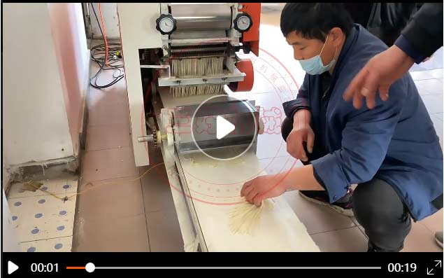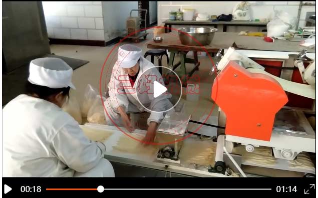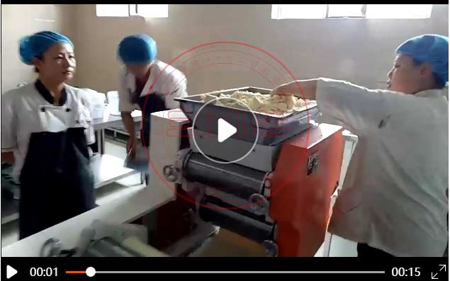通過拌面機(jī)拌好的面絮,放入面條機(jī)內(nèi),通過多組壓面軸,連續(xù)壓面成面片進(jìn)入刀口,生產(chǎn)出不同規(guī)格的面條,圓面條,扁面條,方型面條,菱形面條,刀削面,方形面片等。