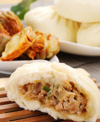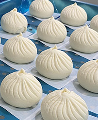 仿手工包子機采用仿手工搟面的方式將面皮壓成合適厚度。再由出餡部分將餡料填充至面皮上,經(jīng)由卷面部分卷成圓柱形狀,傳送至成型部分成型,過程中不會破壞面皮筋性,保持手工原味。