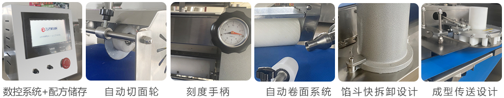 壓面成型面皮,可增加產(chǎn)品表面光潔,不傷面筋。